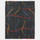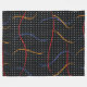 Retro 1980er Primärfarbenstriche zeichnen Spritzer-Muster auf einem geometrisch schwarz-weiß gepunkteten Hintergrund.