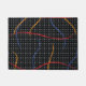 Retro 1980er Primärfarbenstriche zeichnen Spritzer-Muster auf einem geometrisch schwarz-weiß gepunkteten Hintergrund.