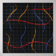 Retro 1980er Jahre Stil Primärfarben Markieren Spritzer Muster auf einem geometrischen schwarz-weiß gepunkteten Hintergrund.