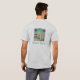 This design captures the quintessential beach vibe with a retro aesthetic. The central focus is on two surfboards standing upright in the sand, positioned in front of a scenic beach backdrop. The background features a serene ocean with rolling waves, a setting sun, and gently swaying palm trees on either side, framing the scene perfectly.