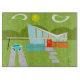 Dieses Retro Palm Springs House mit Car Glass Cutting Board ist ein moderner Liebhaber aus der Mitte des Jahrhunderts. Das minimalistische Kunstdesign besticht durch ein elegantes Orange- und Glashaus mit einem stark abfallenden Dach aus Markierungsform. Die rote Tür hebt den orangefarbenen Steinplaner, der mit Grünpflanzen gefüllt ist, und den dekorativen, türkisfarbenen Kinderblockschutz auf. Zarte Betonblöcke bilden den perfekten Weg durch den grünen Rasen. Ein weißer Carport bietet Schutz vor einem türkisfarbenen und weißen klassischen Auto der 50er Jahre mit Flossen. Das Auto eignet sich hervorragend, um durch die grünen, abgerundeten Berge in der Ferne zu fahren. Das kitschige Haus im Stil der 60er Jahre sieht aus wie eine schattige Oase aus der heißen Palm Springs Sonne.