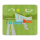 Dieses Retro Palm Springs House mit Car Glass Cutting Board ist ein moderner Liebhaber aus der Mitte des Jahrhunderts. Das minimalistische Kunstdesign besticht durch ein elegantes Orange- und Glashaus mit einem stark abfallenden Dach aus Markierungsform. Die rote Tür hebt den orangefarbenen Steinplaner, der mit Grünpflanzen gefüllt ist, und den dekorativen, türkisfarbenen Kinderblockschutz auf. Zarte Betonblöcke bilden den perfekten Weg durch den grünen Rasen. Ein weißer Carport bietet Schutz vor einem türkisfarbenen und weißen klassischen Auto der 50er Jahre mit Flossen. Das Auto eignet sich hervorragend, um durch die grünen, abgerundeten Berge in der Ferne zu fahren. Das kitschige Haus im Stil der 60er Jahre sieht aus wie eine schattige Oase aus der heißen Palm Springs Sonne.