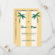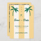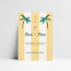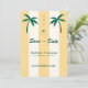 Mit dieser Retro Palm Tree Monogram Tropical Beach Wedding Save the Date Set den Ton für Ihre tropische Feier. Mit seinen gelben Sandstreifen, den bearbeitbaren Palmen und dem Platz für ein Foto- und Hochzeitsportal auf der Rückseite ist es perfekt für eine Hochzeit in Urlaubsort in Hawaii, Mexiko, oder an jeder Küste. Lebhaft, fröhlich und optimistisch, bringt dieses Design eine spielerische Touch zu Ihrem besonderen Tag!
