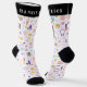 The lively pattern wraps around the sock for a colorful look that stands out while still feeling light and wearable. The black cuff, heel, and toe give the design a bold contrast, while the customizable name on the cuff adds a personalized touch that makes the socks feel extra special.