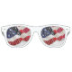 Ein buntes Kunstwerk fängt die Ol'Stars & Stripes an der Vorderseite dieser Party-Schattierungen Linsen im wahren Rot, Weiß und Blau-Stil. In Erwachsenengröße und mit weißen Rahmen dargestellt. Kundenspezifisch anpassen oder kaufen, wie es ist.