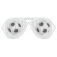 Party-Sonnenbrillen werden im Aviatorstil in Weiß mit einem Sportfußball-Druck auf den Objektiven gezeigt. Kundenspezifisch anpassen oder kaufen, wie es ist.