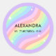 Complete your celebration with these cool Retro Pastel Rainbow party plates! Featuring a dreamy wavy pattern in soft sorbet shades and a stylish lavender purple border, these plates are the perfect addition to a 6th birthday or any 'Groovy' themed party. Personalize easily with your child's name and age for a custom touch that guests will love. High-quality, chic, and designed to make your dessert table shine. Matching invitations and party supplies available in the collection!
