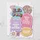 Pastel Retro Geburtstagsinklusive mit Herz, Gänseblümchen, Diskokugel und Schachbrett Hintergrund.