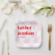 Fügen Sie Ihrem Hochzeitsempfang eine einmalige und unvergessliche Touch mit diesen personalisierten Tellern in kräftigen Akzenten: Rosa und Rot! Jede Platte wird nach Maß mit dem Namen der Braut und des Bräutigams und dem Datum ihrer Hochzeit bedruckt. Diese Teller werden nicht nur Ihr Hochzeitsdekor, die Brautbäder oder die Paardusche vervollständigen, sondern auch Ihre Persönlichkeit zeigen. Das hochwertige Material sorgt dafür, dass sie gut aussehen und die ganze Nacht über aufrecht bleiben. Hellrosa und rote Farben und knackige Schriftart passen perfekt zu Ihrem Hochzeitstil.