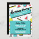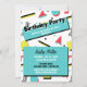 Fun Geburtstagsfeier Einladung für ein 80er- oder 90er-Party mit Retromuster in Gelb, Rot und Türkis.