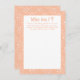 Moderne MCM Whimsical Peach Vintag Modern Muster Retro Brautparty Game Card Mitte des Jahrhunderts. Wer bin ich?