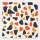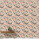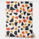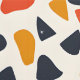 Dieses Kunstwerk weist ein spielerisches und abstraktes Muster auf, das aus unregelmäßigen, kieselartigen Formen besteht, die auf einem cremefarbenen Hintergrund verstreut sind. Das Design verwendet eine warme, in Retro inspiriert Farbpalette aus tiefer Marine, verbrannter Orange und Senfgelb. Die Formen variieren in Größe und Ausrichtung und erzeugen eine dynamische und spontane Anordnung, die ein Gefühl von Bewegung und Energie hervorruft. Die Einfachheit der Formen, kombiniert mit den kühnen Farben, verleiht dem Muster ein modernes Ambiente, das an Vintage Textilien und Design erinnert.