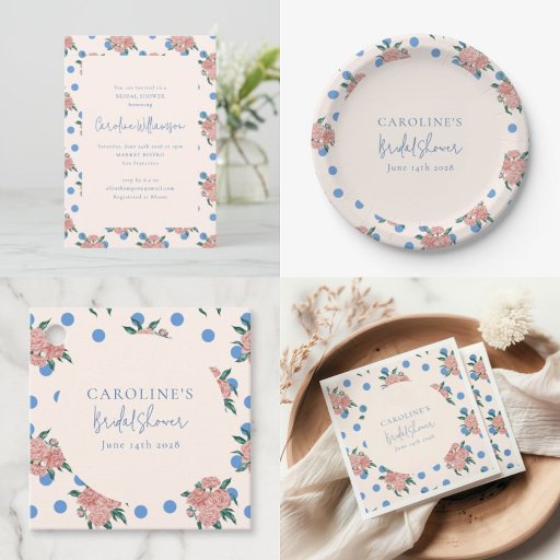 Blue Polka Dot Floral Bridal Shower DecorationsDesignt von Opal Ellery