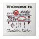 Ist Vintager Kunstentwurf der Retro Landart-Küche der Fliese des Land-Küchen-Themas personalisierten Retro diese Vintage Grafik gerade wie zum Haus der Großmutter zurück gehen. Landküchenregal wird mit die roten und weißen Kaffeetassen voll hängen und dem Zusammenbringen der Gläser, des Tellers, der Schüsseln, des dienenden Geschirrs, des Kruges für Limonade und südlichen süßen gefrorenen Tee und der Küchengeräte mit roten Griffen, sogar ein hängendes Kochbuch von ihren köstlichen, altmodischen Rezepten gefüllt. Gemalte rote hölzerne Küchenregale schließen das homey Gefühl ab, das Sie zurück zu vergangenem Jahr nimmt. Liest Willkommen zu oben mit der personalisierten Küche des Namens unten. Wunderlich, Vintage Grafik ist zu trösten die einfache Linie, die in Schwarzweiss mit dem Rot zeichnet, das für eine spezielle Touch hinzugefügt wird. Perfekter personalisierter kochender Themageschenkentwurf für viele Feiertage, besondere Anlässe und irgendeinen Tag des Jahres, das Sie wollen, um euch die guten ole Tage und an die Wärme der Küche der Mama von der Kindheit zu erinnern. Bereiten Sie vor besonders angefertigt zu werden addieren Namens- oder kundenspezifischen Text. Einzigartiges wunderliches Geschenk für Köche, Köche, bleibe zu Hause Mammen, Hausfrauen, für Mama auf Tages- oder Großmuttergeschenk der Mutter.