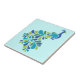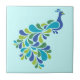 Retro-angeredete Illustration eines Pfaus in den Blues und in den Grüntönen.