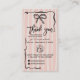 Retro Pink beige Bow Logo QR Thank You Order Visitenkarte