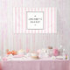 Chic rosa und weiße Streifen bringen eine Retro-Persönlichkeit zu diesem großen Banner. Dieses Design erinnert an Eisdielen und Süßwarenläden von gestern und wird sicher eine Touch Nostalgie für Ihre Marke bringen. Gebaut für Bäckereien, Tortendekoratoren, Catering-Unternehmen, Süßwarenläden oder Geschäfte! Verwenden Sie für Beschilderungen auf Lebensmittelmärkten, Messen oder in Ihrem Geschäftsbereich. Ihr Name ist einfach in einem schwarzen Quadrat für eine moderne Ästhetik gestylt. Design © 1201AM Design Studio