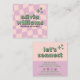 Retro Pink Green Pastel Groovy Checkered Girly Fun Quadratische Visitenkarte