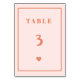 Retro Pink Heart Handwriting Wedding Tischnummer