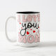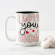 Retro Pink I Love You Mom Mother's Day Hearts Grap Zweifarbige Tasse