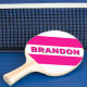 Retro Pink Lollipop Drei kühne Streifen mit Name Pong Paddle Wirbel mit spielerischem Charme und lebendigem Flair, die die Süße der sorglosen Momente und den Geist des fröhlichen Wettbewerbs einfangen. Die leuchtend rosa Kulisse strahlt Spaß und Energie aus, während drei fette Streifen über die Oberfläche strömen, wie ein Motorensturm und ein süßer Genuss. Dieses Paddel eignet sich perfekt für alle, die mit Herz, Farbe und einer Touch von Launen spielen und jedes Spiel zu einer Feier der Persönlichkeit und des Genusses machen.