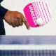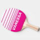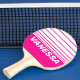 Retro Pink Lollipop Horizon Striping with Name Ping Pong Paddle radiates playful energy, with horizontal bands that stretch across the surface like layers of bright pink sweetness along a lively horizon. The flowing lines create a steady rhythm that brings focus and joy to every rally, inspiring spirited and confident play. This design adds a whimsical and cheerful presence to the table, allowing each point to feel infused with movement, fun, and the delightful charm of a pink lollipop.