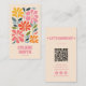 Retro Pink Orange QR Code Groovy Floral Girly Boho Visitenkarte