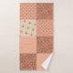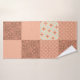 This vibrant patchwork design features a playful mix of retro geometric shapes, subtle floral patterns, and glowing diamond tiles. The palette includes soft peach, pastel pink, coral, and light brown, highlighted with accents of turquoise glow that add a unique contrast. With its quilt-like structure and nostalgic 70s-inspired feel, this pattern is ideal for home decor, fashion, stickers, or accessories. Perfect for anyone who loves vintage vibes mixed with a modern aesthetic!