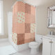 This vibrant patchwork design features a playful mix of retro geometric shapes, subtle floral patterns, and glowing diamond tiles. The palette includes soft peach, pastel pink, coral, and light brown, highlighted with accents of turquoise glow that add a unique contrast. With its quilt-like structure and nostalgic 70s-inspired feel, this pattern is ideal for home decor, fashion, stickers, or accessories. Perfect for anyone who loves vintage vibes mixed with a modern aesthetic!