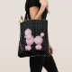 Schwarz mit einem kleinen weißen Polka Dot Tote Tasche, mit Grafik eines großen rosa Furry aussehen Poodle. Personalisieren Sie den rosa Text für sich selbst oder als schöne Geschenkidee für sie.