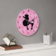This fun, retro clock feature an outline of a poodle in a black and pink color scheme.