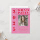 Retro Pink Red Typografy Foto Graduation Party Einladung