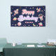 Dieses Space Geburtstagsbanner zeigt Retro-70er-Text, Rosa und lila Farbtöne und Raumdarstellungen. Die Illustrationen sind Planeten, Sterne und ein Raketenschiff. Der Hintergrund ist weltraumarineblau und das ist das perfekte Banner, um Ihren kleinen Astronauten zu feiern.