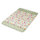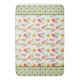 Die inspirierte Platte mit Whimsical Retro zeigt rosafarbene Vögel auf den Zweigen mit gelben Blumen, umgeben von grünen Punktgittern