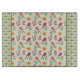 Die inspirierte Platte mit Whimsical Retro zeigt rosafarbene Vögel auf den Zweigen mit gelben Blumen, umgeben von grünen Punktgittern