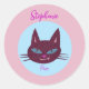 Retro Pink und Blue Purring Kitty Runder Aufkleber