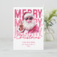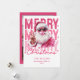 Retro Pink Weihnachtsmann Frohe Weihnachten 3 Foto Familie Weihnachtskarte. Aktualisieren Sie mit 3 Fotos und Ihrem eigenen persönlichen Gruß.