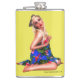 Retro Pinup Beach Girl Yellow Flachmann