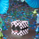 Viereckige, klassisch gestaltete Gefälligkeitsbox mit einem lustigen Bild von schwarzen Polka-Punkten auf rosa mit schwarzem Band und schwarzem Bogen und optionalem rosa Cadillac-Charme. Siehe dazu passende Konfetti, Liebesmarke, Geschenktaschen, viereckige Aufkleber und Packpapier. Sehen Sie sich die gesamte Sammlung von Nifty 50er Favor Box in den SONDERTOUCHS an. | Abschnitt Gastgeschenke.