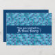 Eine Party Einladung für ein Party mit einem Retro-angesagten, coolen Grafik von gemusterten blauen Schwimmbadfliesen in Blau und Wasser. Der Text auf dieser Einladung ist vollständig anpassbar, um Ihre persönlichen Daten einzubeziehen.