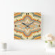 Retro Pop Art Abstract Geometric Wavy Pattern Quadratische Wanduhr