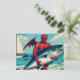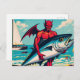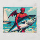 Retro Pop Art Devil mit einem Tunfisch am Strand Postkarte
