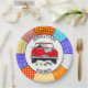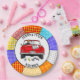 Niedliche Cartoon-Grafik eines Vintagen Retroautos und Braut und Bräutigam in konvertierbaren wir verheiratete Entwicklung nach Party Papier Teller got.