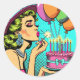 Retro Pop Pinup Giro und Birthday Cake Runder Aufkleber