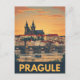 Diese Karte im Vintagen Stil zeigt die Prager Skyline bei Sonnenuntergang. Es zeigt die majestätische St. Vitus Kathedrale und die historische Karlsbrücke, mit einem Boot entlang der Moldau. Die warmen Farben der goldenen Stunde und die klassische Retro-Typografie verleihen ihm das Gefühl eines zeitlosen Reiseplakats. Es ist eine ideale Wahl für einen Ton aus Ihren Reisen oder ein Geschenk für einen Geschichts- und Architekturliebhaber.