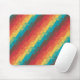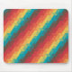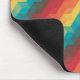 Dieses Design ist ein dynamisches, geometrisches Muster mit wiederholenden Würfeln und Parallelogrammen, die in diagonalen Streifen angeordnet sind. Die Farbpalette ist reich an warmen Farbtönen - Rot, Orangen, Gelb - vermischt mit gedämpften Grüntönen und Blues, wodurch ein visuell dynamischer, fast 3D-Effekt entsteht. Die Formen scheinen sich zu verflechten und bilden eine durchgehende, tessellierte Landschaft, die sowohl Retro- als auch moderne Ästhetik hervorruft.
