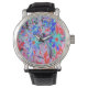 Retro Psychedelic Aqua Green und Orange Blume Armbanduhr