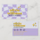 A Vintage retro boho chic purple and blue checkered business card. As you see it features a handmade psychedelic groovy boho abstract purple checkered pattern with a yellow groovy font. It has nostalgic seventies and sixties vibes and colors and groovy fonts. With customizable name and profession and hand drawn social mediaicons . That you can change by clicking on the personalize button. So Grab it and make you business unique and catchy.