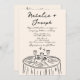 Diese Einladung ist perfekt für Ihre Hochzeit, wenn Sie eine elegante und leicht bearbeitbare QR Code Einladung suchen. Eine elegante, einfache, minimalistische Creme und schwarz handgezeichnete Hochzeitsvorlage Einladung. Das schlichte, Vintage Hintergrundbild auf der Vorderseite und handgezeichnete Geschirr aus Tellern und Cocktailbrillen. Und fett schwarze Hand geschrieben whimsical Braut's und Bräutigam Vornamen. und bearbeitbare Informationen. Mit handgezeichnetem Champagner-Gläser-Turm auf der Rückseite und individualisierbarem QR-Code, sodass Ihre Einladungen online UAWG werden können. Erschwinglich und es ist auch digitale elektronische E-Einladung, wenn Sie gewollt, es per Text oder E-Mail zu senden. Alle Informationen können durch Anklicken des Buttons Personalisieren angepasst werden. So packen Sie es und machen Sie es zu Ihrem, sodass Sie verlobt und aufgeregt einladen .