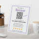 Retro QR Code "verlass uns a review" YELP lila Sockelschild